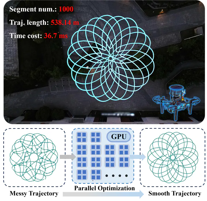 Optimization has been widely used to generate smooth trajectories for motion planning. However, existing trajectory optimization methods show weakness when dealing with large-scale long trajectories. Recent advances in parallel computing have accelerated optimization in some fields, but how to efficiently solve trajectory optimization via parallelism remains an open question. In this paper, we propose a novel trajectory optimization framework based on the Consensus Alternating Direction Method of Multipliers (CADMM) algorithm, which decomposes the trajectory into multiple segments and solves the subproblems in parallel. The proposed framework reduces the time complexity to (O(1)) per iteration with respect to the number of segments, compared to (O(N)) of the state-of-the-art (SOTA) approaches. Furthermore, we introduce a closed-form solution that integrates convex linear and quadratic constraints to speed up the optimization, and we also present a numerical solution for general convex inequality constraints. A series of simulations and experiments demonstrate that our approach outperforms the SOTA approach in terms of efficiency and smoothness. Especially for a large-scale trajectory, with one hundred segments, achieving over a tenfold speedup. To fully explore the potential of our algorithm on modern parallel computing architectures, we deploy our framework on a GPU and show high performance with thousands of segments.